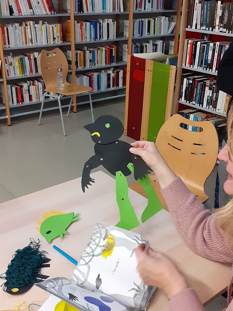 Les stagiaires se sont appropriées de nouvelles "recettes", qu’elles soient corporelles ou techniques, pour une lecture d’albums plus fluide avec les enfants. Il s’agissait bien plus que de fabriquer une marionnette mais de permettre au texte de devenir un véritable espace de représentation tout en apportant de la vie aux illustrations et à l’univers de l’album. Et les stagiaires ont montré qu’elles avaient beaucoup de talent !