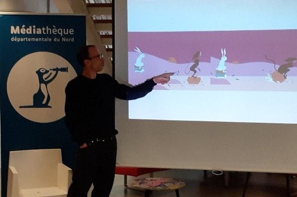Retour sur les rencontres avec l’auteur-illustrateur Adrien Albert à la Médiathèque Le Quai de Condé-sur-l’Escaut le 8 octobre 2025 et à la Médiathèque de l’Escaut à Proville le 9 octobre 2025.