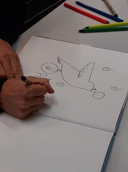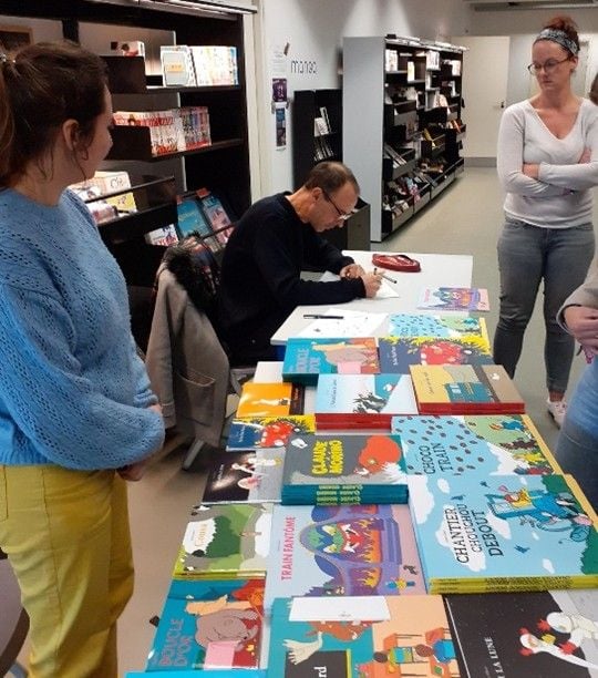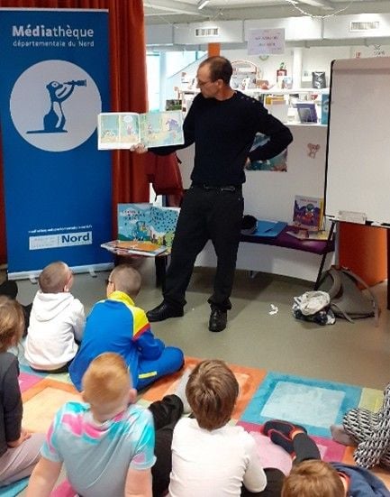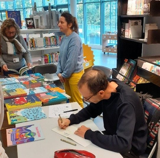 Il leur a également lu plusieurs de ses albums dans lesquels les jeunes ont beaucoup apprécié l'humour décalé et les facéties.