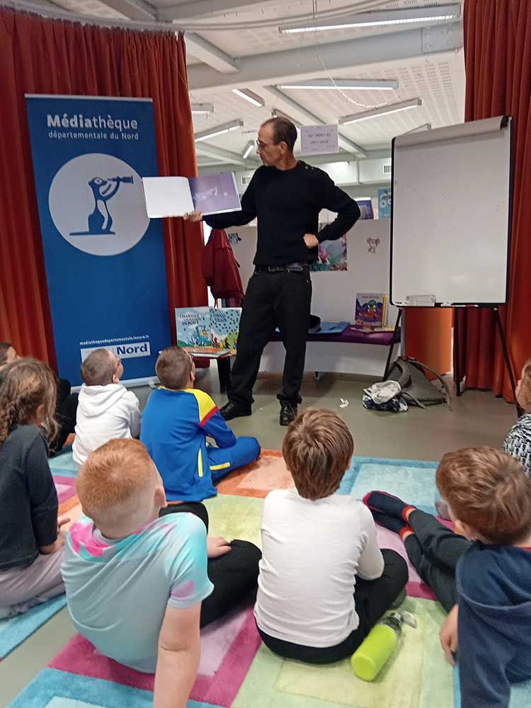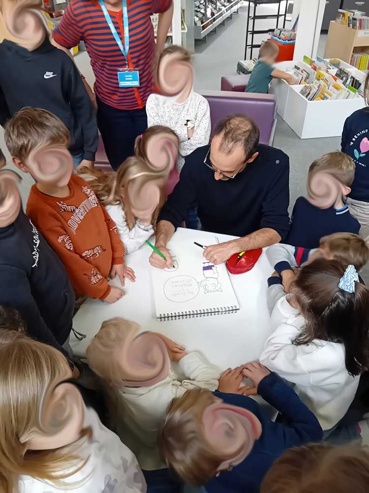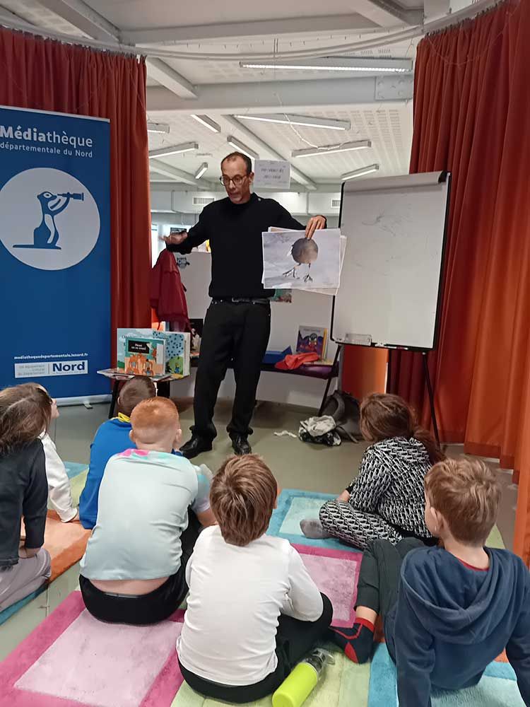 Il leur a également lu plusieurs de ses albums dans lesquels les jeunes ont beaucoup apprécié l'humour décalé et les facéties.